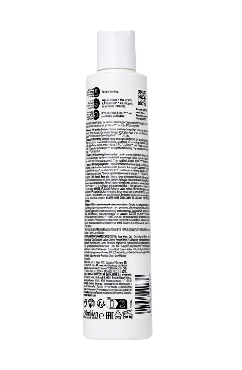 Das sanfte, aber stärkende sulfatfreie Shampoo von Bonacure R-TWO reinigt und stärkt extrem geschädigtes, chemisch überbehandeltes und physisch strapaziertes Haar und unterstützt aktiv den Re-Bonding-Prozess. Die pH-optimierte, vegane* Formulierung gleicht den pH-Wert von extrem geschädigtem Haar aus, minimiert das Aufquellen der Schuppenschicht beim Waschen und erhält den Feuchtigkeitsgehalt des Haares. Frei von Sodium Lauryl Sulphate & Sodium Laureth Sulphate, Silikonen und künstlichen Farbstoffen.